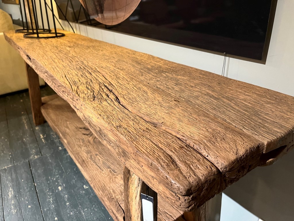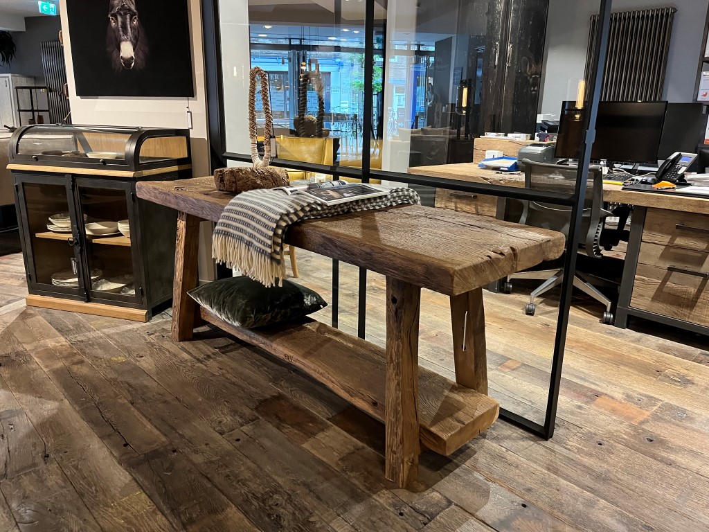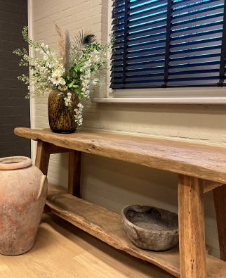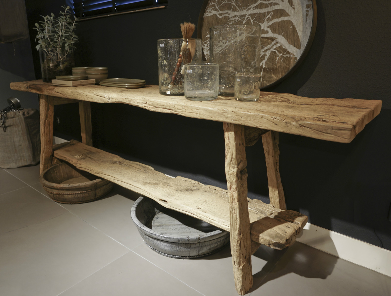 Onze Side Table is een compact meubelstuk met een robuuste uitstraling. Gemaakt van gerecycled oud eikenhout, met een eenvoudig ontwerp dat in elk interieur past. Perfect als bijzettafel of nachtkastje.